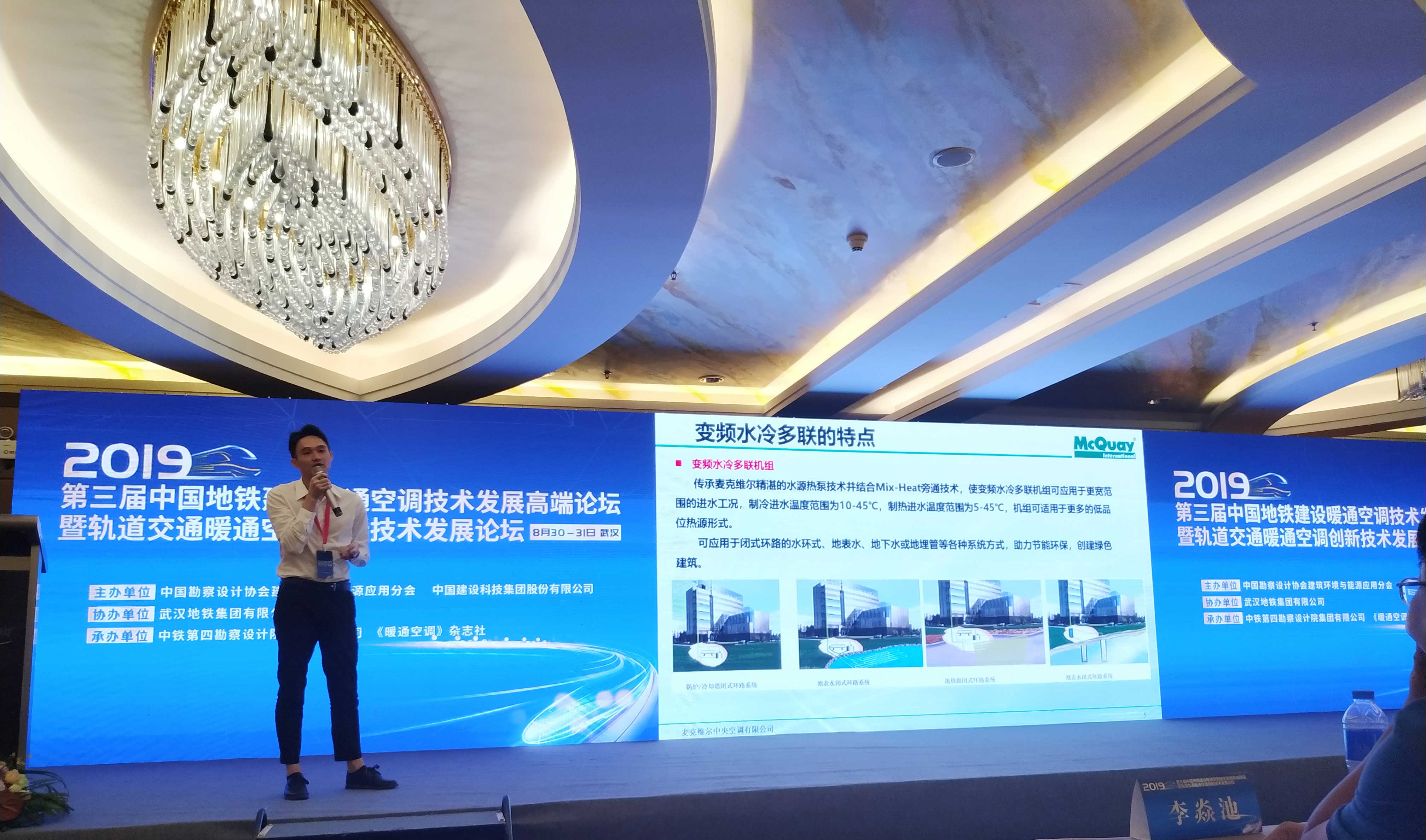針對軌道交通的行業特性,麥克維爾專業工程師李林浩在會議上為大家發表了《地鐵車站小系統空調節能應用方案》的主題演講。從軌道交通空調系統的綜合能效、準確調控、系統穩定三個方面,介紹了變頻水冷螺桿機組與水源多聯機等兩款產品的應用范圍與前景,讓大家對麥克維爾產品在軌道交通的節能應用方案有了更深刻精準的認識。
