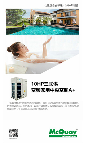 麥克維爾A+系列的7HP(20kW)單相電、10/12/15HP全效型以及10HP熱回收三聯供機組正式上市。不管你是大戶型還是大平層亦或大別墅,都可以用的麥克維爾A+水系統中央空調。