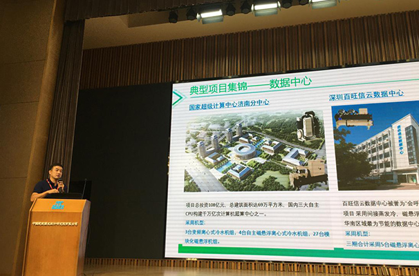 技術(shù)報(bào)告交流環(huán)節(jié),麥克維爾技術(shù)經(jīng)理余欽展開(kāi)了《麥克維爾綠色數(shù)據(jù)中心冷源——冷水機(jī)組篇》的演講。