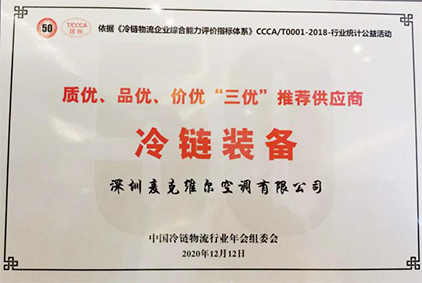 麥克維爾攜全系列的冷鏈產品方案閃耀亮相本屆冷鏈物流年會,同時憑借先進的產品榮獲了質優、品優、價優“三優”冷鏈裝備推薦供應商獎。