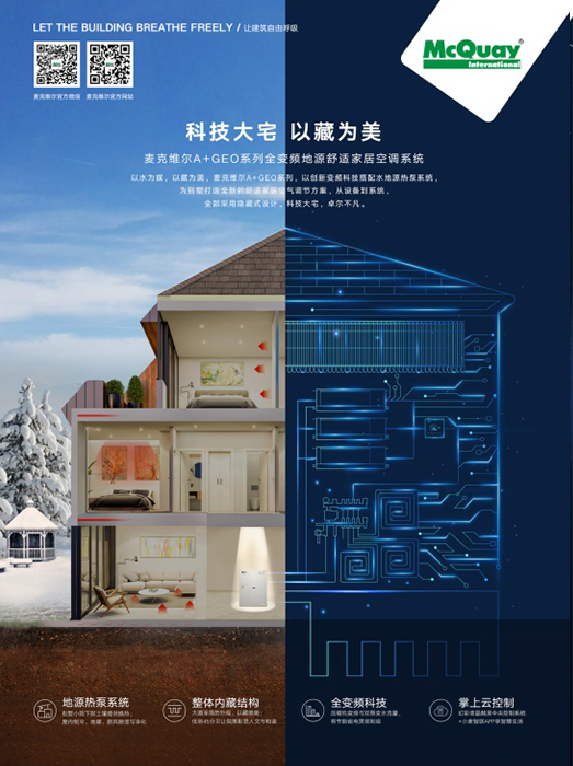 基于與生態和平共處的理念,麥克維爾將環境責任和社會責任融入針對別墅、大戶型高端用戶,開發出一款環境友好型的生態空調—水源兩聯供新品A+GEO。