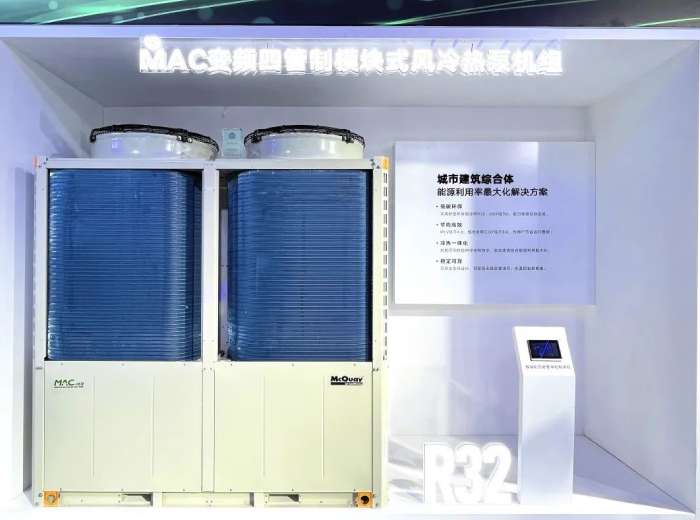 R32全變頻四管制風冷模塊機組,榮獲本屆制冷展的創新產品獎,秉承保護地球、低碳節能等理念,麥克維爾將新一代環保制冷劑匹配更高效的系統設計,融合先進的變頻科技,提升機組能效,制熱強勁,達到寬廣的運行范圍;助力國家碳達峰、碳中和目標,顯著降低溫室氣體的排放,使醫院、實驗室、工商業等各類建筑節能減排。