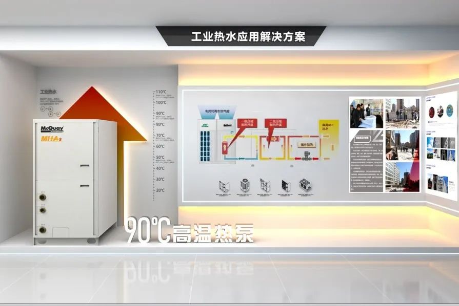 變頻空氣源熱泵高溫熱水機組,復疊式設計,90℃高溫,空氣能源應用,節能高效show出來。