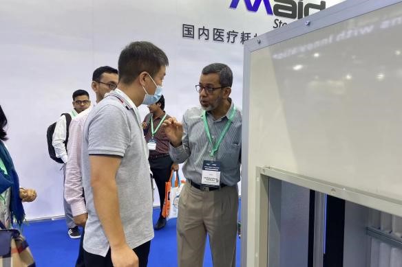 百年品牌麥克維爾,致力于為制藥行業凈化領域提供完善的空調冷熱源和空氣凈化過濾系統方案,保障制藥行業的持續、穩定、綠色發展。本屆展會麥克維爾以制藥行業全場景節能凈化方案為主,攜PFSV模塊化單螺桿機組、恒溫恒濕空氣處理機、蒸發冷模塊機等產品和技術,首次亮相該展會,憑借著高端的品牌形象、雄厚的科技實力、硬核的技術交流以及熱情專業的服務在展會上大放光彩,備受矚目。