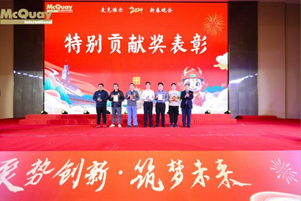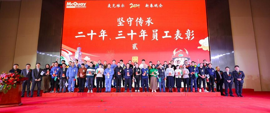 征程萬里風正勁,重任千鈞再奮蹄。這一年,面對市場的“變”,公司積極“應變”,收獲滿滿實績,每一項成就背后都有一個優秀的團隊在辛勤耕耘。晚會現場進行了年度貢獻團隊的表彰環節,以此表達公司最誠摯的感激和敬意。此外,現場還頒發了一項特別的榮譽,加入麥克維爾集團十年、二十年、三十年共計410名員工(占公司總人數一半)接受了公司的禮贈和祝賀,他們在各自崗位兢兢業業、堅守傳承,是麥克維爾不斷前行的動力之源。