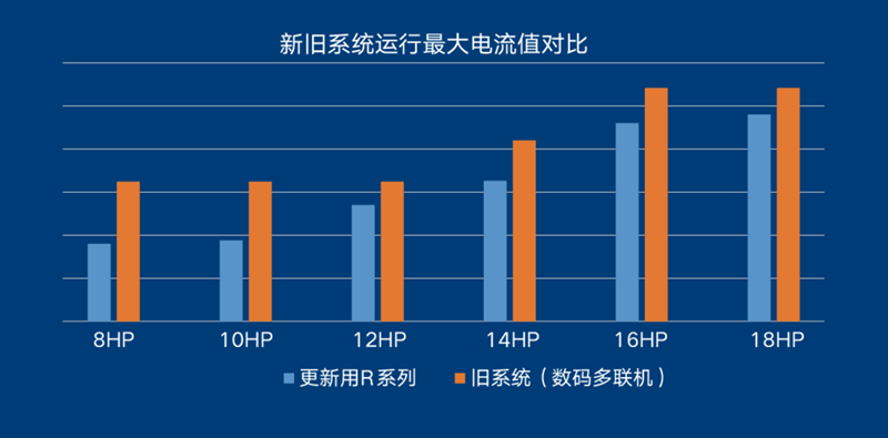 基于高效的系統(tǒng)設(shè)計(jì),機(jī)組的功耗實(shí)現(xiàn)了進(jìn)一步降低。更新用多聯(lián)機(jī)電流遠(yuǎn)小于老舊空調(diào)系統(tǒng)機(jī)組,所以通過(guò)沿用原有配線設(shè)計(jì),仍可從容實(shí)現(xiàn)空調(diào)系統(tǒng)擴(kuò)容需求。同時(shí)老舊系統(tǒng)中的通訊線仍可以繼續(xù)沿用,免去重新布線帶來(lái)的復(fù)雜工作。
