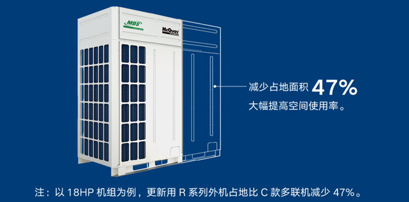 室外機(jī)全新設(shè)計(jì),緊湊外觀,提高空間使用率,為設(shè)計(jì)安裝提供更大的自由度,占地面積全面減小。同等外機(jī)占地面積,輕松實(shí)現(xiàn)更大容量,解決室內(nèi)空調(diào)需求增加、空調(diào)效果變差等問(wèn)題。