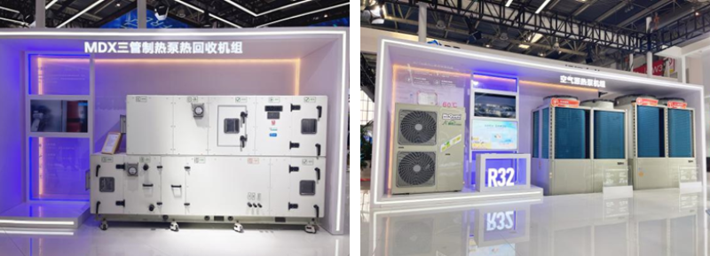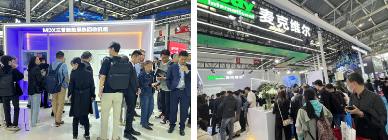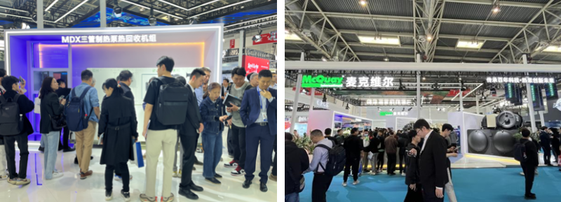 展會現場,麥克維爾針對大型工業用熱泵、中大型商業熱泵、小型家用熱泵、工業高溫熱泵等四大領域,全面展示了產品+技術+控制有機融合的低碳智慧解決方案,為到場觀眾呈現了一場精彩的科技盛宴。
