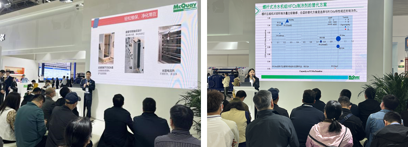 聚焦新冷媒、低碳技術、工業應用、高溫熱泵替代鍋爐等熱門話題,麥克維爾現場開展了《HFO制冷劑多級壓縮離心式冷水機組應用》、《空氣側產品在工業領域的節能應用》、《低環溫空氣源熱泵采暖新技術》、《高溫熱泵工業領域應用》等技術交流會,充分發揮展會的橋梁紐帶作用,共同致力于暖通行業的可持續發展。