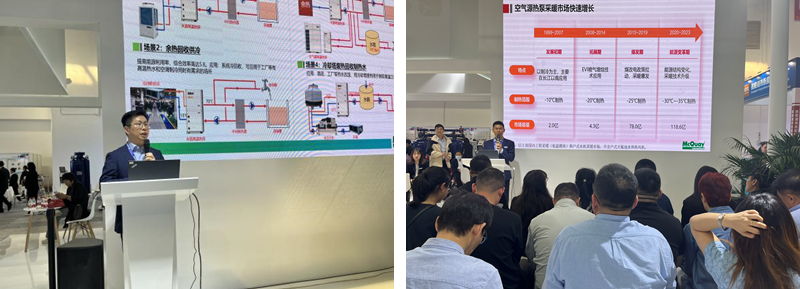 展會期間,行業知名專家、設計院團隊等紛紛助陣麥克維爾展臺,圍繞行業新趨勢、新技術,發起了一系列前瞻性和科學性的討論,共話低碳熱泵新發展。