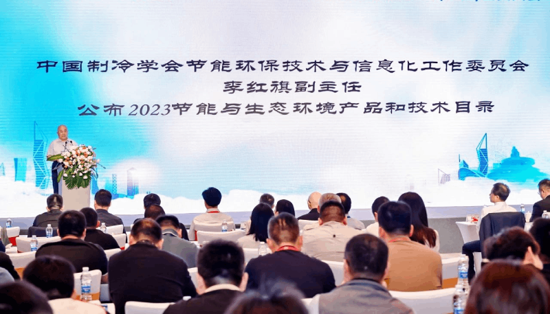 大會期間舉行了2023年度中國制冷學(xué)會節(jié)能與生態(tài)環(huán)境產(chǎn)品和節(jié)能與生態(tài)環(huán)境技術(shù)頒證儀式。麥克維爾變頻熱氟融霜冷凍冷藏套機、A+全效系列變頻風(fēng)冷熱泵機組兩項產(chǎn)品經(jīng)過嚴(yán)格評選,入選2023年度節(jié)能與生態(tài)環(huán)境產(chǎn)品(技術(shù))目錄。