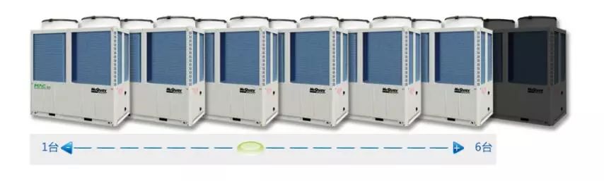 MAC-XE系列150kW大冷量機組,應對較大負荷項目時可減少設備數量;如當項目冷量超過900kW時,相比130kW模塊機方案可減少1臺或以上設備數量,從而減少占地面積與工程安裝量。