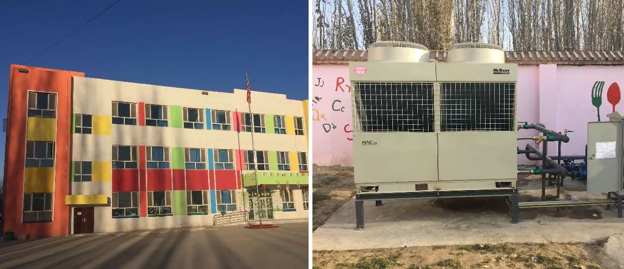 新疆和田地區墨玉縣、和田縣,截至2017年底共計110個幼兒園/小學,采用約250臺麥克維爾低溫強熱空氣源熱泵模塊機組用于學校冬日供暖。