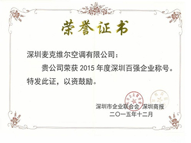 麥克維爾深圳工廠躋身2015深圳企業100強