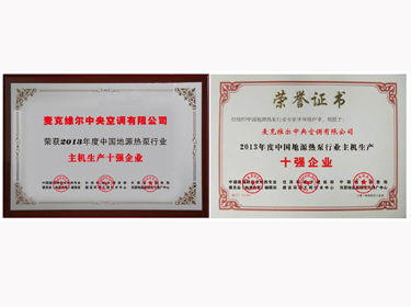 2013年8月在天津舉辦的“第五屆中國地源熱泵行業高層論壇”會議的頒獎環節中,麥克維爾中央空調有限公司獲頒發“2012年度中國地源熱泵行業主機生產十強企業”證書。 “中國地源熱泵行業十強企業評選”活動旨在為落實國務院節能減排的戰略部署、加快發展新能源...