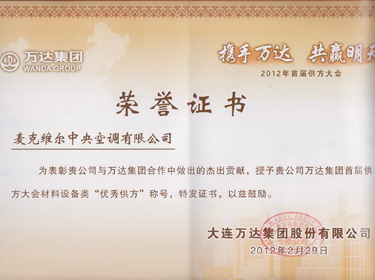 萬(wàn)達(dá)集團(tuán)授麥克維爾優(yōu)秀供方稱號(hào)