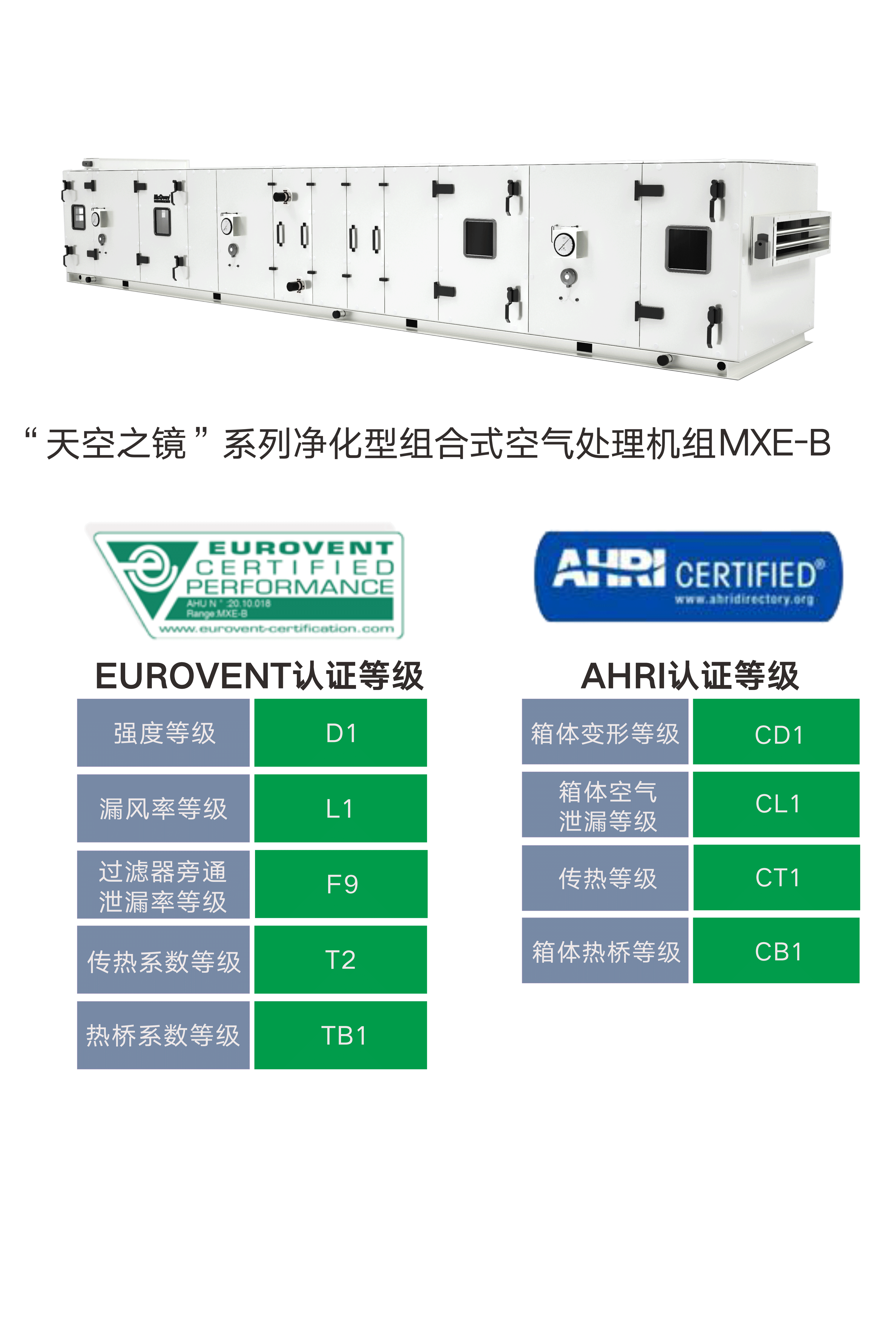 機組通過德國VDI6022權威潔凈設計標準測試,并獲得中國CRAA、歐盟Eurovent以及美國AHRI權威認證的一致認可。